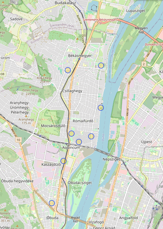 FÁK a Rómain komposztpont (1039 Kossuth Lajos üdülőpart 21-1) 47.579805, 19.066643 Vitorla komposztpont (1031 Váci Mihály tér) 47.5689904, 19.0613141 1. békásmegyeri komposztpont (1039 Juhász Gyula u.) 47.595716, 19.066846 2. békásmegyeri komposztpont (1039 Hollós Korvin Lajos / Nád utca u.) 47.593860, 19.048462 ÖrLőpormalom komposztpont (1031 Őrlő-Lőpormalom u.) 47.5669062, 19.0544276 Szökőkút melletti komposztpont (1031 Kanóc u. / Római sétány) 47.570026, 19.050387 Kaszásdűlői komposztpont (1033 Búza u. 12.) 47.559742, 19.045910 Szél utcai komposztpont (1035 Szél u. 3-5) 47.543865, 19.039241
